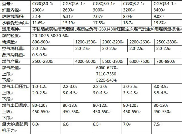 兩段式煤氣發(fā)生爐技術(shù)參數(shù)